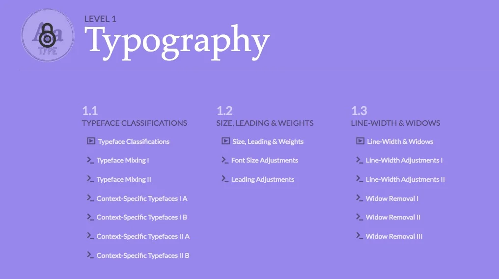 Eine Art interaktive "Typo-Schule". Nett programmiert das Ganze. Es ist ein Crash-Kurs in Sachen typografischer Gestaltung und es gibt z.B. die Aufgabe Typeface Mixing, in der man Schriften zuordnen soll, die gut zueinander passen.